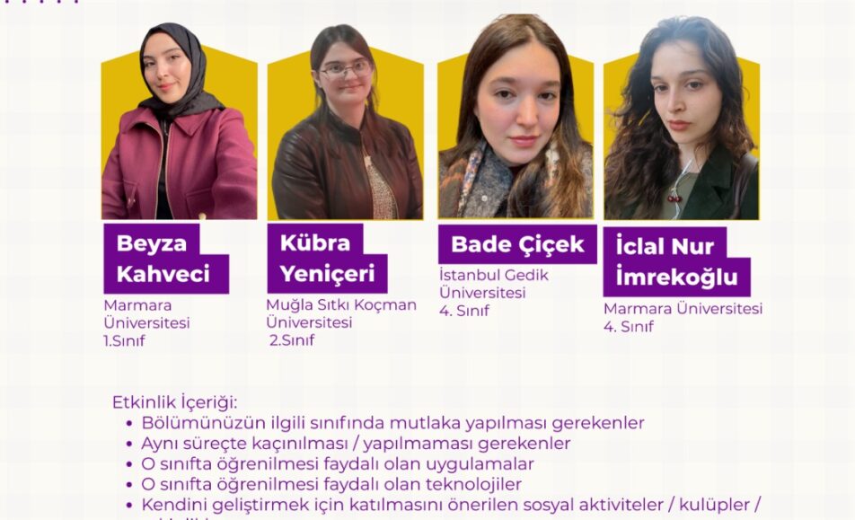Bir etkinliğiniz yaklaşıyorsa, giriş bilgisi, etkinlik whatsapp grubu, tekrar izleme linki gibi etkinlik güncel bilgisine buradan ulaşabilirsiniz.
