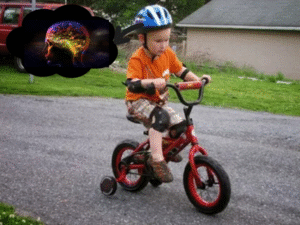 Bisiklet sürmeyi öğrenmeye çalışan bir çocuğu ele alalım. İlk defa bisikletle karşılaşıyor. Elleriyle gidonu sıkı sıkı tutuyor, ayaklarını pedala yerleştiriyor. Aslında beyninde bisikletin üstünde nasıl kalabileceğinin komutları giriliyor: “Şu anda en uygun pozisyondayım.” Sürmek için ayağını pedala basması gerektiği söyleniyor ya da pedala bastığında tekerleğin döndüğünü keşfediyor. Bu yeni girdi, tekrardan beyninde bir nöral ağ oluşturuyor: “Pedala bastığımda bisiklet ilerliyor.”Sırayla ayaklarını pedala basıyor ama denge sağlamak ilk zamanlarda çok güç olduğundan bisikletten düşüyor. Acı hissiyle bir şeylerin yanlış olduğunu anlıyor. Beyni tam da o anda “Bir şeyleri farklı yapmalıyım.” diyor. Duruşunu, belki de hızını dengeliyor. Tekrar tekrar hata yapa yapa doğrusunu öğreniyor. Ve tam olarak bisiklet sürmeyi öğrendiğinde, beyni otomatik olarak “bisiklet sürme işi”ni kaydediyor.