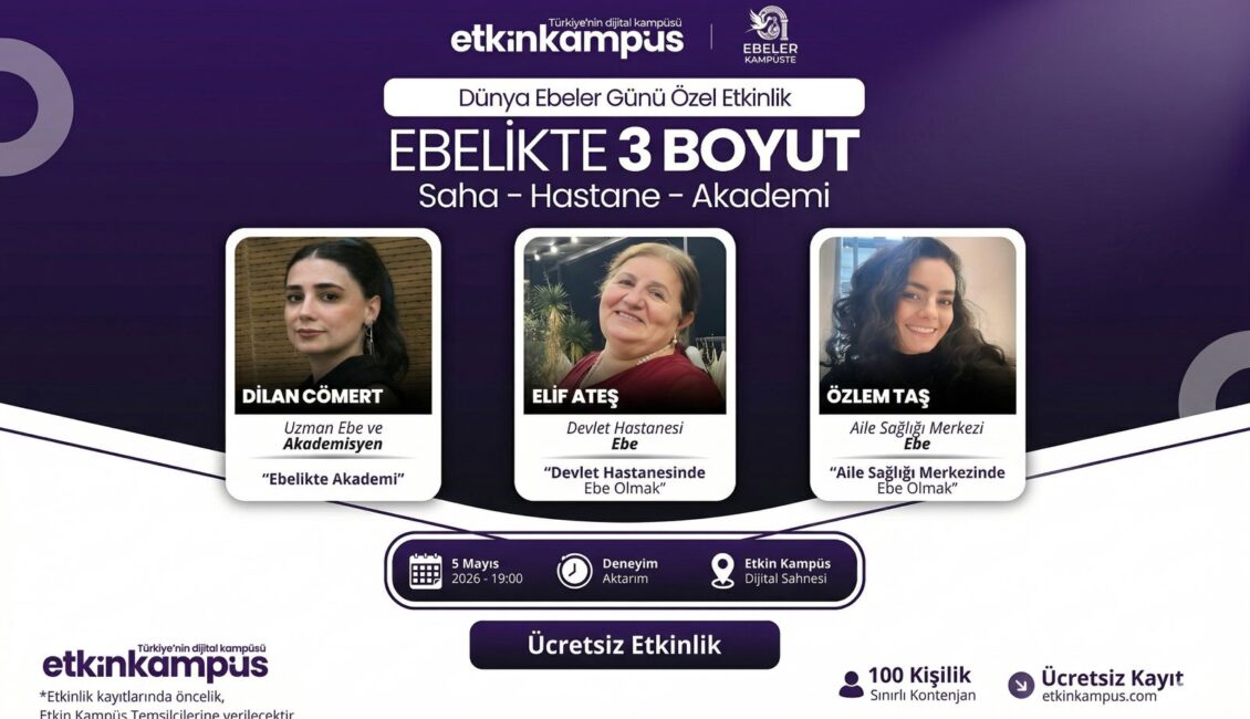 Ebelik, sadece bir meslek değil; hayatın başlangıcına tanıklık eden, bilim ile şefkati birleştiren kutsal bir yolculuktur. 5 Mayıs Dünya Ebeler Günü’nde, bu onurlu mesleği tüm yönleriyle ele almak için dijital sahnemizde buluşuyoruz. “Ebelikte 3 Boyut” etkinliğimizde; akademinin derinliğini, devlet hastanesinin temposunu ve aile sağlığı merkezlerinin samimiyetini uzman konuklarımızdan dinleyeceğiz.
