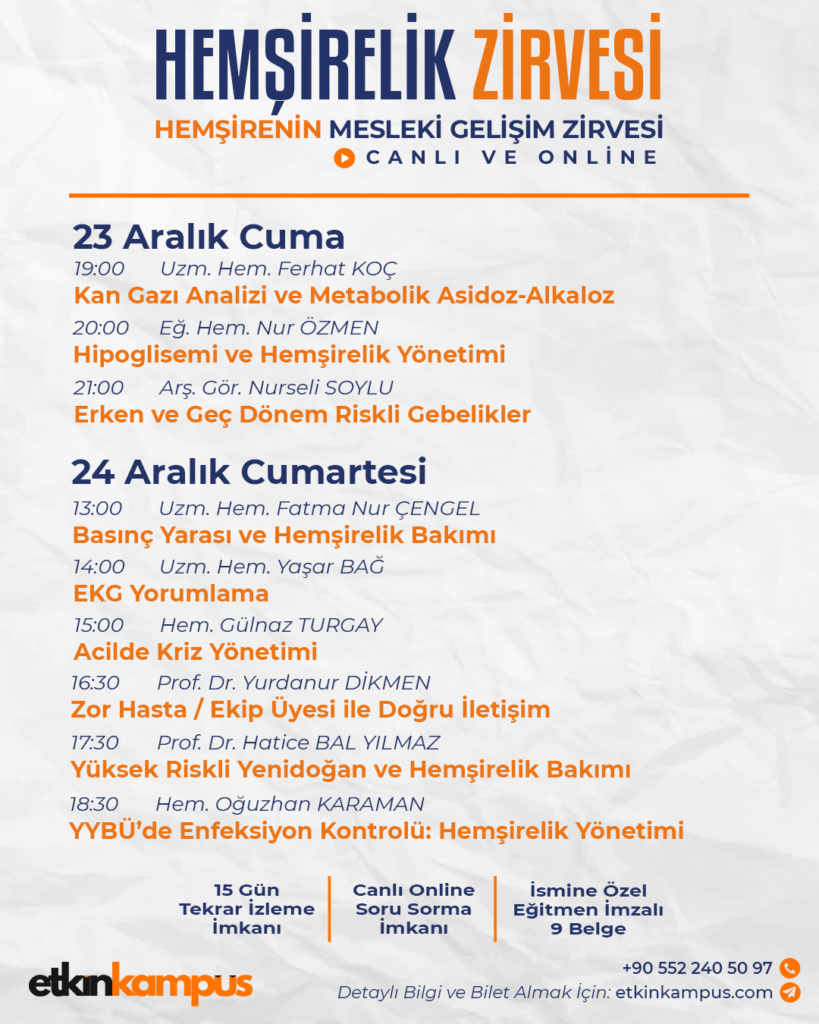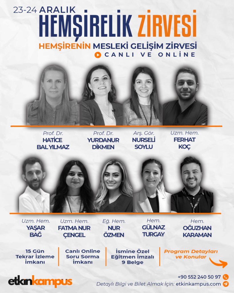 Hemşirelik camiasının çok değerli 9 konuşmacısı 9 farklı konu başlığı ile bu etkinlikte Etkin Kampüs dijital sahnesinde!