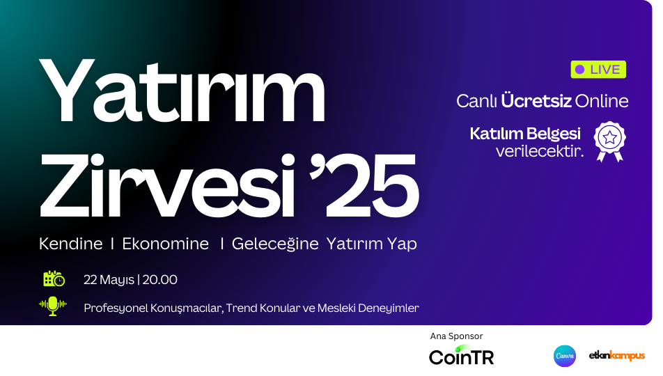 🎉 Yatırım Zirvesi ‘25: Kendine | Ekonomine | Geleceğine Yatırım Yap! 📅 Tarih: 22 Mayıs 2025 ⏰ Saat: 20.00 📍 Yer: Online (Canlı ve Ücretsiz) Ekonomini, kariyerini ve kişisel gelişimini bir adım ileri taşımak isteyenler için tasarlanan Yatırım Zirvesi ‘25,...
