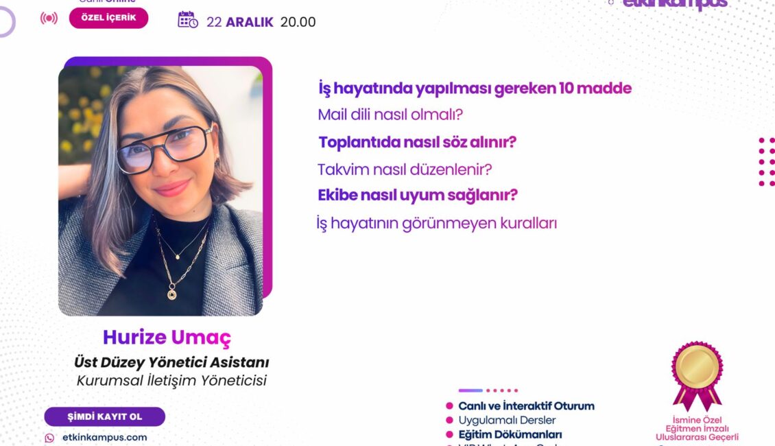 💼 Kurumsal dünyaya hızlı bir giriş yapmak, profesyonel iletişim, toplantı kültürü, zaman yönetimi ve ekip uyumu gibi konularda kendini geliştirmek istiyorsan;