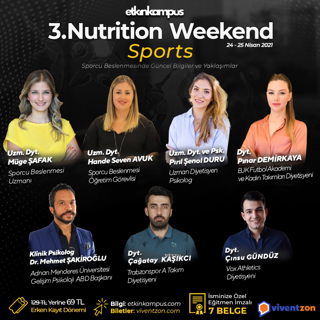 3.NUTRITION WEEKEND SPORT 6 DİYETİSYEN 1 PSİKOLOG EĞİTMEN KADROSUYLA 24-25 NİSAN’DA SİZLERLE !