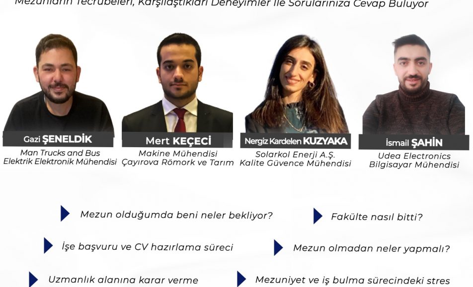 Mezunların Tecrübeleri, Karşılaştıkları Deneyimler ile Sorularınıza Cevap Buluyor! Bu Eğitimde Neler Var? -Fakülte nasıl bitti? -Yüksek lisansa başlamalı mıyım? -KPSS mi özelde çalışmak mı? -Mezun olmadan neler yapmalı? -Mezun olduğumda beni neler bekliyor? -Mezuniyet ve iş bulma sürecindeki stres -İş...