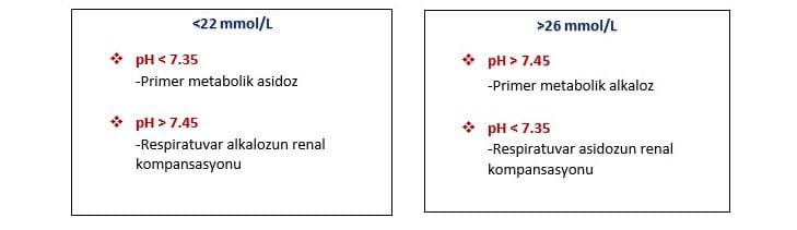 PaCO2’ de- pH ile aynı yönde değişiklik varsa asit – baz bozukluğu metaboliktir. (pH artmış, PaCO2 artmış)