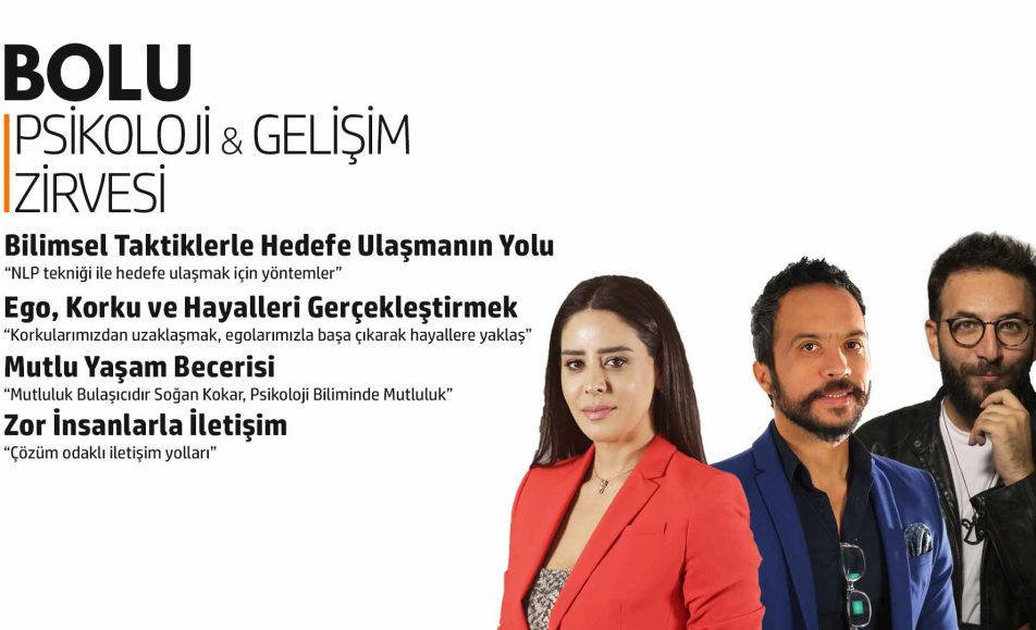 Psikoloji ve Gelişim Zirve serisi şimdi Bolu’da. Kendine ve kariyerine artı sağlamak için sende yerini al! 4 Sertifikalı zirvede; Nöropsikolog Gül Yiğit(Davranış Bilimleri Uzmanı, Yazar) “Bilimsel Taktiklerle Hedef Ulaşmanın Yolu” Psikolog Dr. Mehmet Şakiroğlu(Öğretim Üyesi,TEDx Konuşmacısı, Yazar) “Ego, Korku ve...